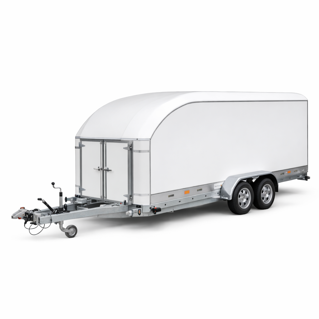 La remorque porte voiture fermée est conçue pour offrir une protection maximale lors du transport de véhicules. Grâce à sa structure entièrement carénée, elle protège contre la pluie, la poussière et les projections.